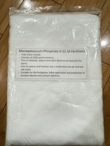 Monopotassium Phosphate (MKP) is a high-purity, fully water-soluble fertilizer that provides essential phosphorus (52% P₂O₅) and potassium (34% K₂O) in a readily available form. With a zero nitrogen content (0-52-34), MKP is ideal for crops that require targeted phosphorus and potassium without additional nitrogen, especially during flowering and fruiting stages.